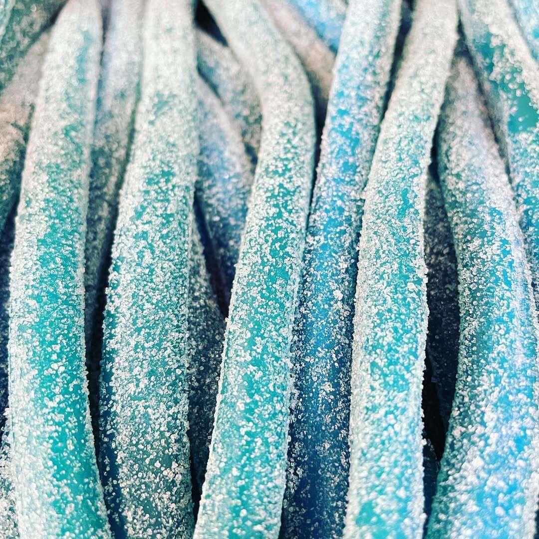 Ingrédients: Sucre, sirop de glucose et de fructose, farine de blé (gluten), amidon, acidifiant E296, gélatine, gaisse végétale (palme), acidifiant E270, correcteur d’acidité E325, arômes, émulsifiant E471, sel, humectant E422, colorants E133.