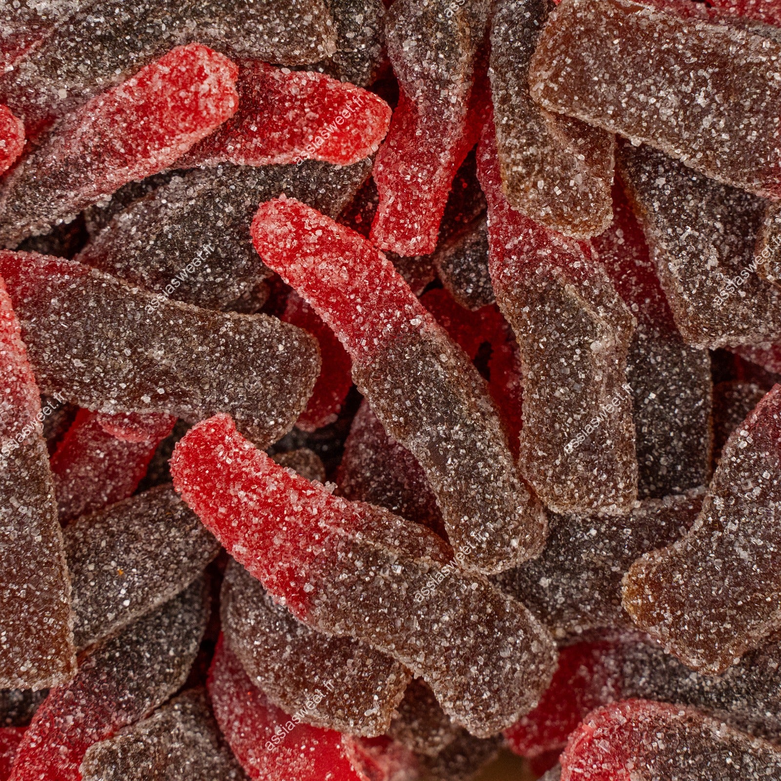 Les bonbons Bouteilles Cola Cerise de Dulceplus sont des bonbons gélifiés en forme de bouteilles de cola aromatisées à la cerise.