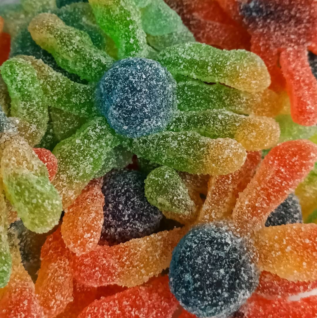 Confiserie en forme de poulpe, au bon goût de fruit acidulé , recouvert de sucre acide.