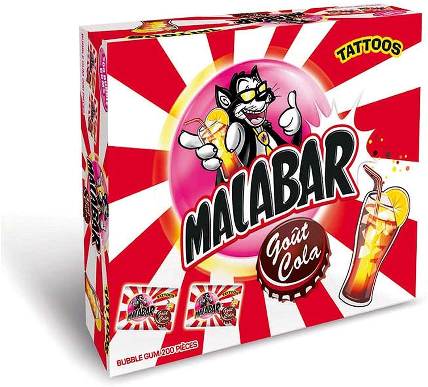 Malabar Cola, le Bubble Gum original aux bulles légendaires et au goût incomparable, accompagné de ses tatouages inimitables.